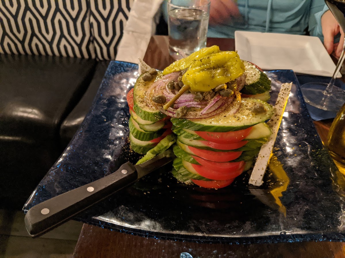 First time here and it was amazing. We loved everything we had. For drinks we had the Afternoon Tea Martini and the Cretan Cuke. Both amazing. Not overpowering and they were smooth. Starter was the spread sampler with tzatziki, hummus, and fig and goat cheese. The fig one was a little sweet. Tzatziki was very good.for entrees my husband got the steak gyro with rice pilaf (definitely homemade rice!) and he said it was very good. I got the mousaka and it was Incredible!! My first time having this dish and I’m so glad I got it. I don’t even like eggplant and I loved this dish. For dessert we got the phyllo with custard, honey and walnuts. So good. We can’t wait to come back and try other dishes! Staff was great. Would highly recommend!!
